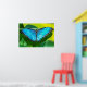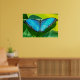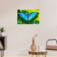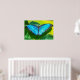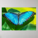 Butterfly Blue Morpho vor einem Hintergrund von grünem Blattwerk. Ein niedliches Poster für Sie oder als Geschenk.