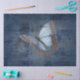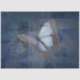 "Blue Morpho Butterfly Navy Blue Ephemera Decoupage Tissue." Das elegante Kunstwerk von Audrey Jeanne Roberts, einem international renommierten Künstler und Designer, besticht durch einen blauen Morpho-Schmetterling, der über einen wunderschönen, texturalen Hintergrund mit Vintager Handschrift und Ephemerien über einem tiefblauen Hintergrund ragt. Urheberrecht.