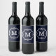 Blue Navy Monogram Weinetikett