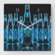 Blue Neon Beer Flaschen Quadratische Wanduhr