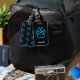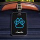 Blue Neon Dog Paw Print auf schwarz Gepäckanhänger