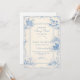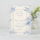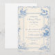 A classic powder-blue toile design inspired by traditional French countryside prints. Vintage nursery motifs — pram, rocking horse, lamb, pastoral village scenes and delicate ornamental borders — frame a clean, structured central layout. The soft ivory background paired with refined blue linework creates a timeless and sophisticated look. Perfect for a traditional baby shower with an elegant European aesthetic.