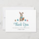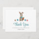 Ein blauer Osterhase Dankeschön-Karte mit Garten oder Frühling-Thema. Ein guter Weg, um Ihren Gästen zu danken, dass sie zu Ihrem Party gekommen sind.