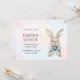 Genießen Sie den Urlaubssinn mit dieser charmanten Osterlunch-Einladung, die einen zauberhaften Hasen mit einer Blumenkrone vor einem weichen pastellfarbenen Hintergrund trägt. Diese wunderschön gestaltete Einladung, die perfekt für Ansammlungen und Freunde geeignet ist, um die Jahreszeit zu feiern, Set für ein herrliches und unvergessliches Osteressen. Diese Einladung, die mit hochwertigen Materialien und lebhaften Farben gestaltet wurde, ist vollständig mit Ihren Veranstaltungsdetails anpassbar und macht es einfach, eine persönliche und einzigartige Touch zu schaffen. Egal ob Sie eine lässige Ansammlung oder einen eleganten Brunch beherbergen - diese Einladung ist der ideale Ort, um Ihre Gäste mit Charme im Frühjahr willkommen zu heißen." Eigenschaften: Hochwertiger Kardinenbelag mit weichem pastellfarbenem Hintergrund und Blumengebälk. Vollständig anpassbar mit Ihren Veranstaltungsdetails. Ideal für Osteressen, Brunch oder Frühjahrsfeiern.