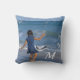 Blue Ocean Beach Girl Foto White Initial Kissen