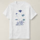 Rochen und Fische schwimmen in einem grafischen T - Shirt des Korallenriffs. Grafikdesign zum Thema Blaue Ozeane.