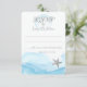 Silber Muscheln, Seestern und Sand Dollar über eine blühende Welle von Farbe Antwort Karte zu ergänzen Strand Hochzeit Einladung.