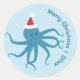 Blue Octopus Santa Merry Weihnachten Runder Aufkleber