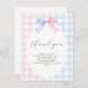 Blue oder Pink Gingham Bow Danke-Card Dankeskarte