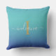 Blue Turquoise Ombre Elegant Monogram Skript-Name Kissen im Freien für den woll, sich mit Freunden und Familie im Freien an den warmen Sommernächten oder durch das Feuer bei kalten Nächten zu verbringen
