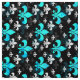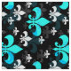 Blaue und weiße Lilie Französisches Retro-Lilienoberflächen-Muster auf schwarzem, lichtdurchlässigem Hintergrund