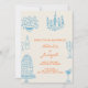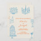 Blue Orange Drawn Whimsical All In One Wedding Einladung