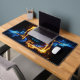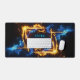 Dominate your gaming setup or workspace with an accessory that radiates pure, epic energy. This massive horizontal desk mat features a spectacular, glowing rectangular frame made entirely of dynamic elemental magic. On the left, fierce blue energy crackles with intensity, seamlessly blending into roaring orange and yellow flames on the right.