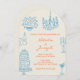 Blue Orange Hand Drawn Whimsical Arched Wedding Einladung