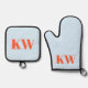 Blue Orange Monogram Initials Kitchen Gift Ofenhandschuh & Topflappen-Set