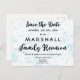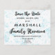 Imitate blauer Spritzer Hintergrund für diese Save the Date für eine Family Wiedersehen Postkarte. Sehen Sie mehr auf Zigglets hier bei Zazzle.