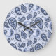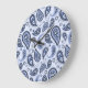 Blue Paisley Pattern Große Wanduhr