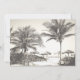 Palmen individuelle Geburtstagsfeier Einladung. Für den Gal, der einen Meilenstein Geburtstag in einem tropischen Ort feiert, verfügt diese hübsche Karte über Drehbücher und gedruckte Schriftart auf einem hellblauen Strandhintergrund. Große Palmen schlängeln sich in der warmen Brise und strohgedeckte Sonnenschirme an der Küste. Die Rückseite enthält die gleiche Palmenszene im Sepiaton.