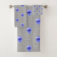 Blaues Muster auf grauem Stoffhintergrund. Sie können die Größe des Musters ändern, wenn Sie möchten