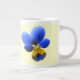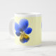 Diese phantastische Tasse zeigt ein Foto einer wilden Pansy-Blume. Das Foto ist künstlich gefärbt, was zu einer Pansy mit hellen und dunklen Blautönen und einem blassgelben Zentrum führt. Der Hintergrund ist blassgelb, um die Schönheit dieser Blume bis zum Maximum zu zeigen.