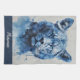 Eine große Katze, die in blauen Spritzer gestrichen wird, macht ein schönes Küchentuch. Ideal für alle, die große Katzen, wild lebende Tiere, Natur und draußen Lieben. Personalisieren Sie mit Ihrem Namen in einem dunkelblauen Band unten.