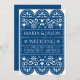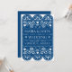 Dieses mexikanische Blue Papel Picado Folk Art Wedding Invitation Design zeichnet sich durch eine verzierte und symmetrische Anordnung aus, inspiriert vom Papelpicado, mit aufwändigen Schnittmotiven von Herzen, Sternen, Blumen und wirbelnden Mustern. Die abgerundeten Kanten sind reich detailliert, während gepunktete Linien den zentralen Raum spalten und somit ideal zum Einfügen von Ereignisinformationen oder personalisiertem Text sind. Das Ganze ist festlich und romantisch, ideal für Einladungen zu Hochzeiten, Party oder Kulturfeiern mit handgearbeitetem Charme.