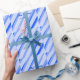 Blue pastel add name date boho retro lines pattern geschenkpapier