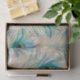Helle Pfauenfedern auf hellbraunem Hintergrund. Perfekt für Geschenkverpackungen, Handwerkskunst und Entpackungen. Stellen Sie sicher, dass Sie die passende Geschenktasche ausfüllen!