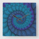 Blue Peacock Fractal Pattern Quadratische Wanduhr