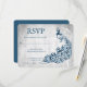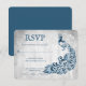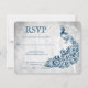 Blue Peacock Leaf Vine Wedding RSVP Card Karte