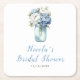 Schöner Untersetzer aus Brautparty mit Blume aus blauem Torf in einem Maurerkirsch. Ideal für ein Brautparty. Die Wörter können geändert werden, um Ihre eigenen Angaben oder Anforderungen Anzug