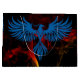 Blaue Phoenix mit rotem Rauch im Hintergrund