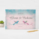 Blue Pink Lovebirds Mexican Wedican Guest Book Gästebuch