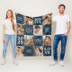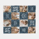 Blue Plaid Family Monogram 8 Photo Christmas Fleecedecke