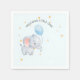 Playful, adorable elephants held blue balloons in their trunks and surrounded gold stars.