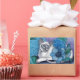 Original Aquarellmalerei von Sandra Gale, mit einem blauen Punkt Siamkatze, umgeben von blauen Blumen auf einem blassgelben lila Hintergrund. Blume sind blaue Hydrangea und blaue Mohn. Das Design ist perfekt für Katzenliebhaber und diejenigen, die die siamesische Rasse besonders mögen. Ideal für Schlafzimmerwandkunst oder gerahmt mit passendem Bild. Die passende Aquarellmalerei eines Schokoladenpunktes Siamese gibt es auch in meinem EverIrisPrints Shop.
