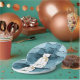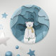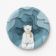 Adorable Bärenpapiere Teller mit einer Abbildung eines kleinen Eisbären mit seiner schützenden Mutter auf einem wunderschönen blauen Hintergrund. Ideal für Baby Dusche Partys. Das Bild sieht so aus, als wäre es in drei Dimensionen, aber es ist nur ein Druck. Illustriert und entworfen von Patricia Alvarez.
