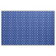Weiße Polka hat einen blauen Hintergrund.