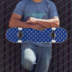 Ein Muster weißer Polka Punkte mit blauem Hintergrund.