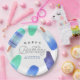 Diese niedlichen, personalisierten Teller sind so konzipiert, dass sie den Einladungen unserer Kinder zur Geburtstagsparty in Aquarellfarben entsprechen. "Happy Birthday [Name]" erscheint in der Mitte in whimsical Schriften.