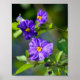 Ein Poster mit violetten Blumen von einem Blue Potato Bush.
