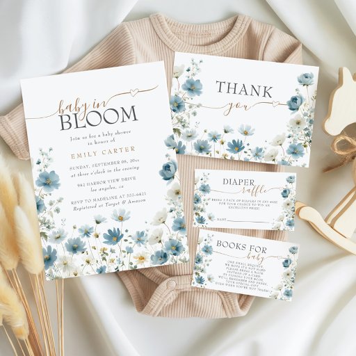 Blue Preppy Flowers Watercolor Baby ShowerDesignt von Zakreva Olha