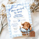 Preppy Blue Bow Highland Kuh Baby Shower Einladung, haben Sie die Moos Boy Baby Dusche gehört, Farm Heiligen Kuh Baby Dusche, mit Baby Kuh
