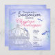 Feiern Sie Ihre Quinceañera mit einer glänzend blauen und silbernen Pferdekutsche, umgeben von kristallblauen Libellen. Wasserfarbenblaue Textur mit Glitzer-Kutsche wird mit passenden Rsvp-Karten, Etiketten und Geschenken schön aussehen. Übertragen Sie dieses magisch blaue Libellendesign einfach auf andere Karten und Geschenke.