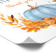 Little Pumpkin ist unterwegs, eleganter Herbst / Herbst Baby Duschkarten und Geschenke Schild in blau und orange, für ein Baby Dusche. Personalisieren Sie den gesamten Text einfach. Kate Eden Art