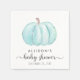 Diese niedlichen Babyduschen sind mit einer pastellblauen Kürbis-Wasserfarbe, einer "Babydusche" in einem stilvollen grauen Drehbuch mit Wimpern und dem Mütternamen und Duschdatum in einer Mischung aus moderner und handgeschriebener Typografie ausgestattet.