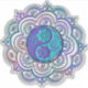 A detailed mandala pattern with floral yin yang elements. The design features a range of vibrant colors including blues and purples.
