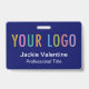 Personalisieren Sie unser berufliches PVC-Namensschild mit Ihrem Firmenlogo, Mitarbeiternamen, Jobtitel oder anderen benutzerdefinierten Texten. Erhältlich mit einem Lanyard, einer Metallklammer oder einer einziehbaren Rolle. Design in Blau und anderen Farben mit einem modernen minimalistischen Design von MISOOK. Alle Farben sind anpassbar. Die Abmessungen sind 3,38 Zoll x 2,13 Zoll. Keine Mindestbestellmenge und keine Einrichtungsgebühr. Alle Bestellungen werden von Zazzle auf Zazzle-Produkten ausgeführt. MISOOK hat KEINE persönlichen Daten, Lieferdaten oder Kreditkarteninformationen, daher kontaktieren Sie Zazzle direkt für Fragen, die auch Fragen zur Anpassung Ihres Designs beinhalten.