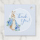 Adorable Hasen Rabbit "Danke! Aquarell Grafik auf einem pastellblauen Gingham karierten Hintergrund für eine Junge oder Mädchen Dusche Gefallen Tag.