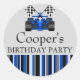 Dieses moderne, individuell anpassbare Geburtstagsaufkleber verfügt über ein blau-schwarzes Rennauto auf grauem Hintergrund. Passen Sie es an, indem Sie Ihre Daten im Schriftart Ihrer Wahl hinzufügen!
